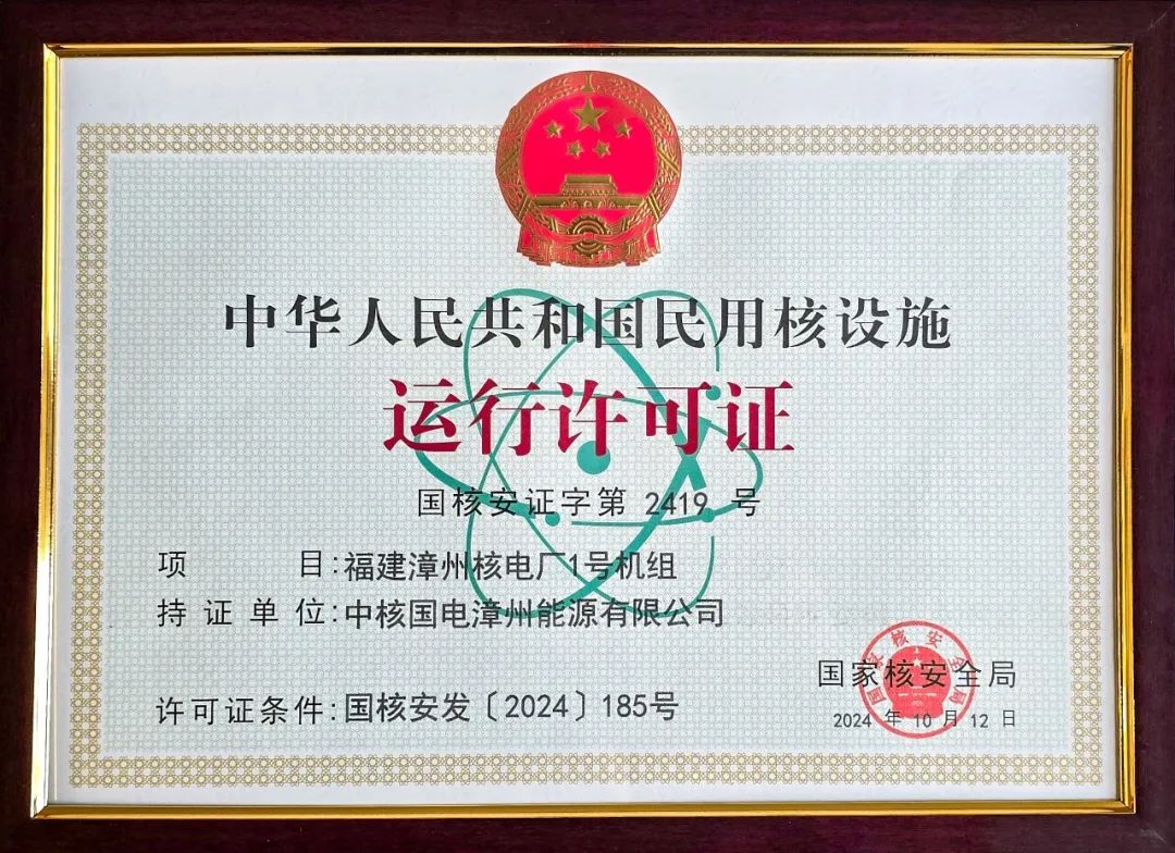 10月12日,生態(tài)環(huán)境部向中核集團(tuán)旗下中國核電(股票代碼:601985)投資控股的漳州核電1號機(jī)組頒發(fā)運(yùn)行許可證。生態(tài)環(huán)境部副部長、國家核安全局局長董保同出席儀式并為漳州能源頒發(fā)許可證,中核集團(tuán)黨組成員、副總經(jīng)理張凱出席并見證頒證儀式。15時18分,漳州核電1號機(jī)組開始裝載首爐核燃料,標(biāo)志著機(jī)組進(jìn)入主系統(tǒng)帶核調(diào)試階段,為后續(xù)機(jī)組臨界、并網(wǎng)發(fā)電等工作奠定了堅實(shí)基礎(chǔ)。