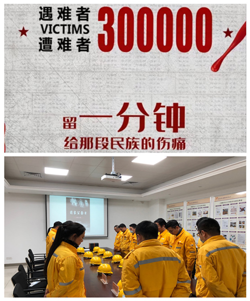 2020年12月13日,是第七個(gè)南京大屠殺死難者國(guó)家公祭日。南京化學(xué)工業(yè)園熱電有限公司(以下簡(jiǎn)稱公司)現(xiàn)場(chǎng)運(yùn)行人員在班組安全活動(dòng)開始前,為緬懷同胞,全體起立默哀一分鐘。
