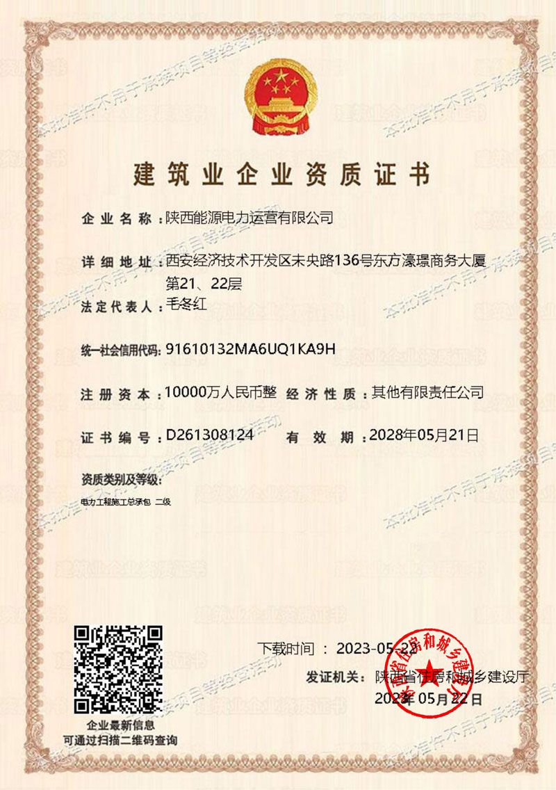 陜投電力運營順利取得電力工程施工總承包二級資質(zhì)