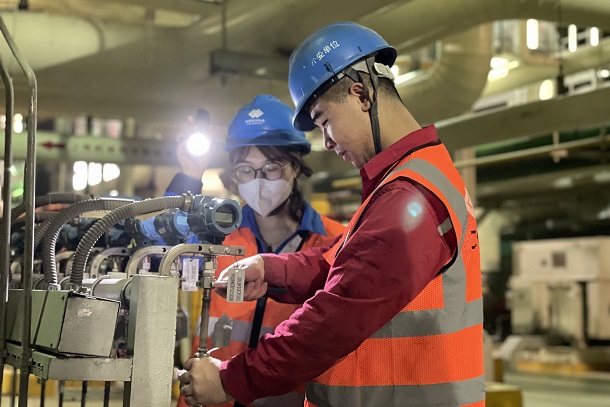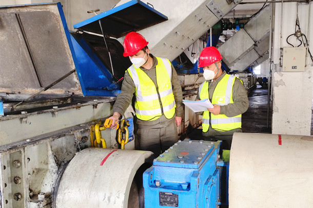 圖為大南湖二礦安監(jiān)員檢查生產系統(tǒng)