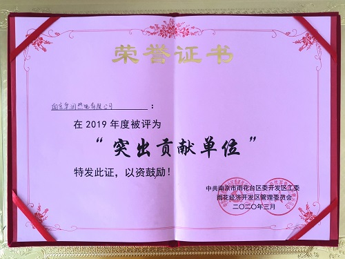 中國(guó)電力網(wǎng)訊 4月28日,南京市雨花經(jīng)濟(jì)開發(fā)區(qū)管委會(huì)婁杰書記一行四人,蒞臨南京華潤(rùn)熱電有限公司并向公司授予雨花經(jīng)濟(jì)開發(fā)區(qū)2019年度“突出貢獻(xiàn)單位”獎(jiǎng)牌和證書,對(duì)公司2019年在開發(fā)區(qū)社會(huì)、經(jīng)濟(jì)發(fā)展等工作中做出的突出表現(xiàn)進(jìn)行表彰。總經(jīng)理丁建民代表公司領(lǐng)取了獎(jiǎng)牌。