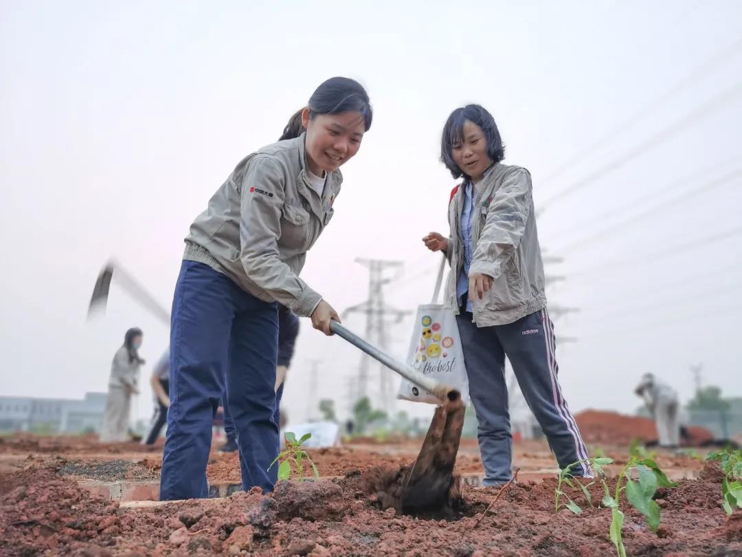 “職工菜地”里今天這個給辣椒除除草、那個給番茄澆澆水、還有給黃瓜施肥的,在自家菜地里自拍的,看著自己菜園里的蔬菜一天天長大,看著花地的花競相開放,該公司職工感覺到幸福的日子就像花一樣每天綻放!(攸軒)