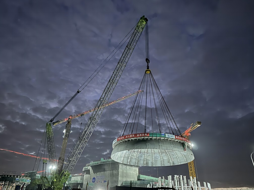 “玲龍一號(hào)”是繼“華龍一號(hào)”后我國(guó)核電自主創(chuàng)新的又一重大成果。為確保此次吊裝的可靠實(shí)現(xiàn),項(xiàng)目團(tuán)隊(duì)協(xié)調(diào)統(tǒng)籌各方資源,從“人機(jī)料法環(huán)”五個(gè)維度全面開(kāi)展先決條件分析,逐項(xiàng)落實(shí)管控措施,在密切關(guān)注氣象窗口,嚴(yán)格保證工程安全和質(zhì)量可控在控的前提下,高質(zhì)量完成吊裝任務(wù)。