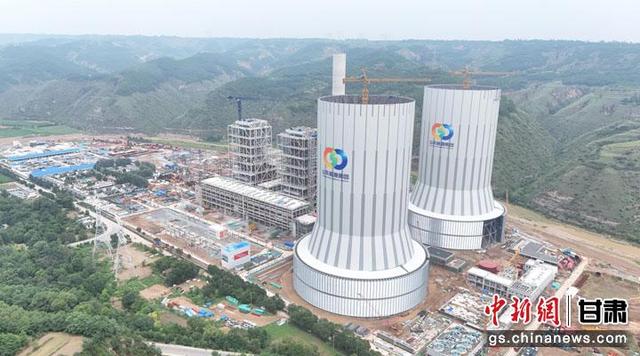 7月13日,靈臺電廠兩座間冷塔齊封金頂。