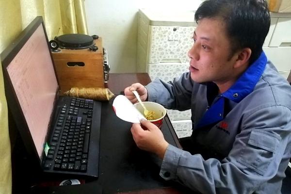 年前,為了讓項(xiàng)目部的兄弟們能回家團(tuán)圓,周國(guó)劍一如既往地選擇了堅(jiān)守。就這樣,這個(gè)春節(jié),泡面是他的主食,餅干就是他的“調(diào)味品”。