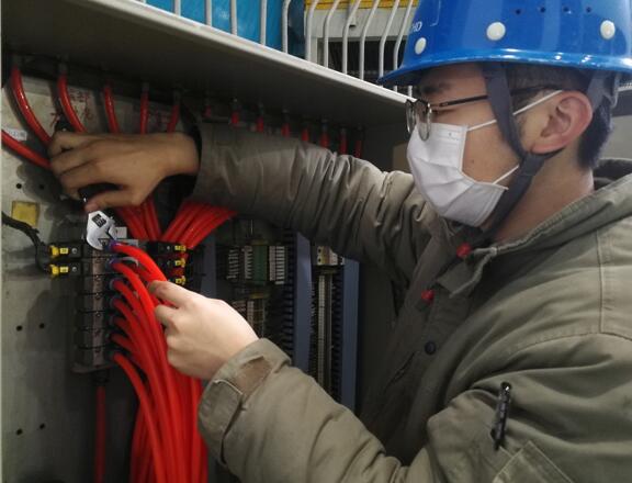 林躍正在給#2斗輪機(jī)變頻控制柜二次回路查線緊線