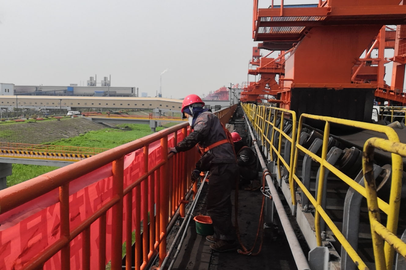 中國電力網(wǎng)訊 4月5日,神皖馬鞍山發(fā)電公司施工人員正在碼頭卸船機橋架上進行油漆涂刷。近日,該公司對碼頭面、卸船機、簇樁、護舷等項目進行集中全面整治,將碼頭卸船機、碼頭區(qū)域建筑物外墻出新、碼頭靠船簇樁進行油漆,在建筑物上加裝企業(yè)標識牌,通過集中整治消除六臺卸船機原防腐層局部脫皮、開關(guān)室機房局部損壞、外立面銹蝕等安全隱患,為打造水清岸綠、風光旖旎的長江岸線出一份力,把“綠水青山就是金山銀山”的“兩山”理念轉(zhuǎn)化為扎扎實實的行動,共護長江母親河。