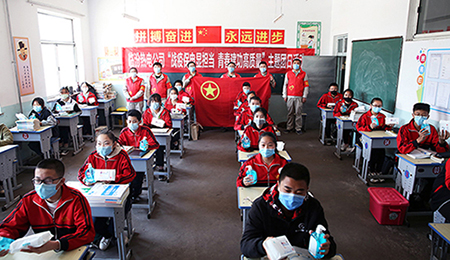臨汾熱電公司青年志愿者扛起專用消毒工具和噴壺,和老師們一起,將汾河學(xué)校“大唐班”教室和樓道公共設(shè)施區(qū)域進行全方位無死角衛(wèi)生消毒,為即將復(fù)學(xué)復(fù)課的學(xué)生營造安全放心的學(xué)習(xí)環(huán)境。
