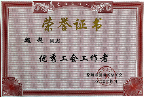 中國電力網(wǎng)訊 4月28日下午,在徐州市銅山區(qū)總工會召開的“第十屆五次全委(擴大)會議”上,表彰了一批先進集體和個人。徐州華潤電力有限公司技術(shù)支持部黨支部副書記、副部長、分工會主席魏超榮獲“優(yōu)秀工會工作者”榮譽稱號。