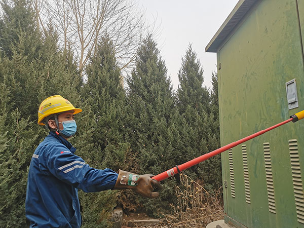 團員青年對外引電源開關進行驗電