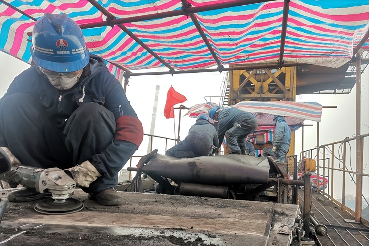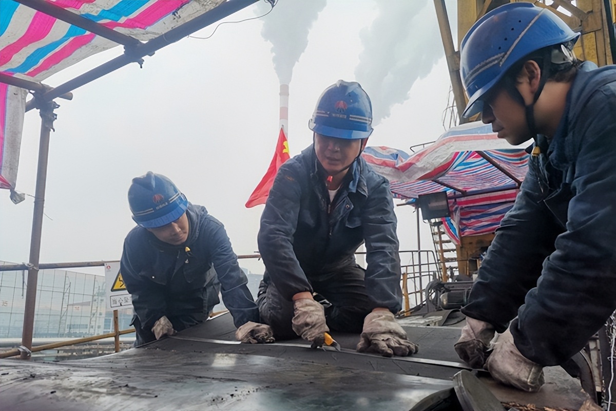 早春的風(fēng),帶著絲絲寒意,伴隨著細細春雨,讓人倍感寒冷,但在最短的時間內(nèi)完成搶修任務(wù)的強烈責(zé)任感,讓現(xiàn)場每一個燃運檢修人員忘卻了寒冷。斗輪機懸臂皮帶定位、新皮帶轉(zhuǎn)運、硫化機設(shè)備吊裝……每一項工作都是耗費體力的“大工程”。為了搶抓時間,在三天的搶修工作中,燃運檢修人員在崗位上就餐,中午和晚上也顧不上休息,加班加點投入到搶修攻堅戰(zhàn)中,不敢有絲毫懈怠。