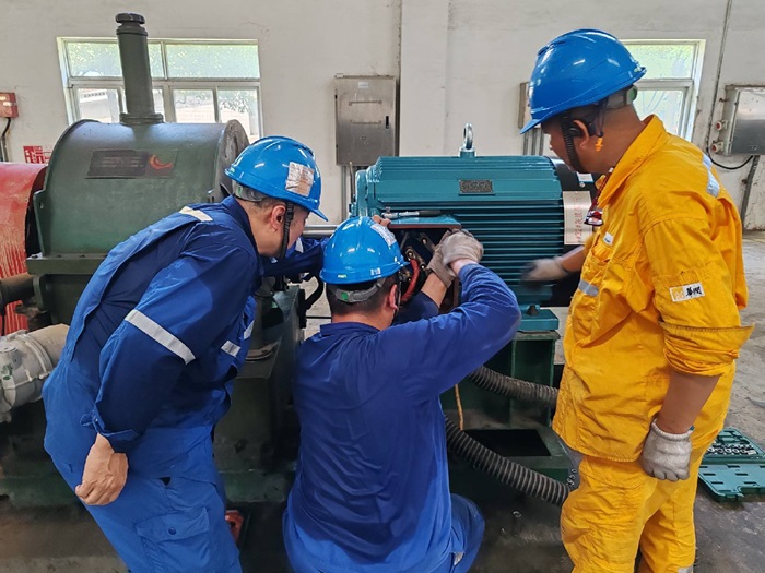 在高溫檢修現(xiàn)場(chǎng),每天都能看到檢修員工揮汗如雨,奮力拼搏的身影,設(shè)備有缺陷,機(jī)器壞了,那是不能等的,即便再炎熱,溫度再高,也要第一時(shí)間撲上去。在水泵旁、在火嘴邊、在送風(fēng)機(jī)下、在撈碴機(jī)上,檢修員工們總是一邊擦拭著汗水,一邊維修著設(shè)備,他們提出的口號(hào)是“勤消缺、精檢修、戰(zhàn)高溫、保供電”。