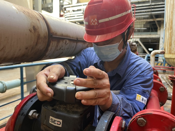 化學(xué)水處理計(jì)量泵突發(fā)損壞,汽機(jī)班組老員工周俊便帶領(lǐng)他的三人搶修小組第一時(shí)間趕到,他們一頭扎進(jìn)工作區(qū)域,整整一天都在忙碌的搶修,一天的最低氣溫是34度,最高氣溫是43度,他們的衣服不知道被汗水浸濕了多少次。搶修時(shí),他們?yōu)榱私禍?,直接用冷水澆頭。