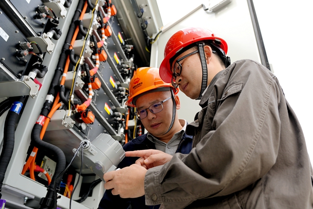 設(shè)備調(diào)試中,往往需要不止一次地反復(fù)驗(yàn)證。5號電池艙通訊與EMS后臺通訊存在頻繁中斷的現(xiàn)象,廠家經(jīng)采取更換通訊電纜及裝置、加裝抗干擾磁環(huán)等措施,問題仍未消除。伍玉祥帶著團(tuán)隊(duì)一起重新梳理通訊柜的接地線,仔細(xì)分析原因并改變接地方式,終于解決5號電池艙通訊中斷的難題。