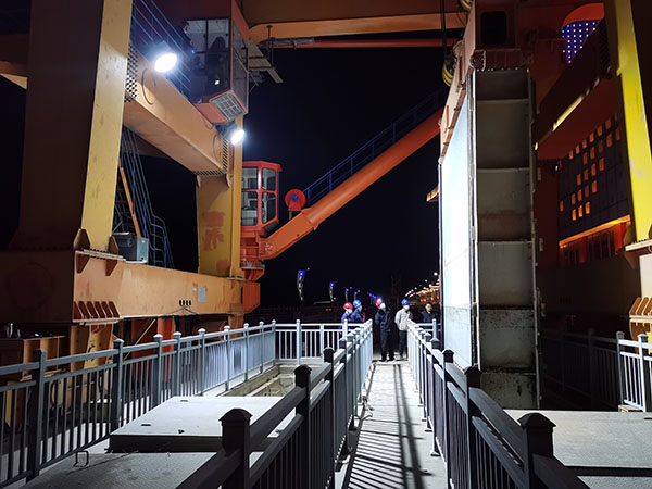 大功告成后,起重人員又開始愉快地“復工”了,檢修一行人來也匆匆、去也匆匆,一溜煙地消失在了漆黑的夜里,他們對故障的“當頭一棒”,順利化解了“屋漏偏逢連夜雨,船遲又遇打頭風”的尷尬局面。