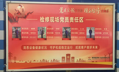 電力運營發(fā)布了等級檢修現(xiàn)場標(biāo)準(zhǔn)化布置指引,指導(dǎo)各“作戰(zhàn)”單元統(tǒng)一規(guī)范設(shè)置黨建及企業(yè)文化展板,助力檢修現(xiàn)場標(biāo)準(zhǔn)化、流程化、目視化管理。黨員突擊隊、退役軍人突擊隊、青年突擊隊在急難險重任務(wù)中沖在先、干在前,相繼完成發(fā)電機冷卻器回裝、吸收塔內(nèi)漿液清理、輔汽改造等任務(wù),為機組大修注入“紅色力量”。
