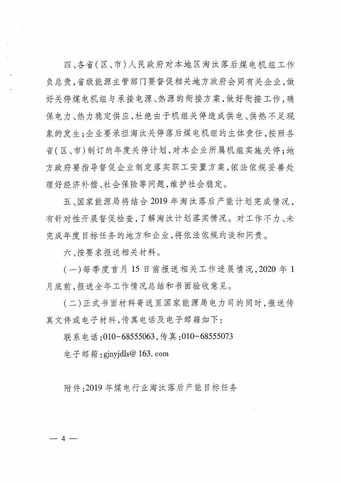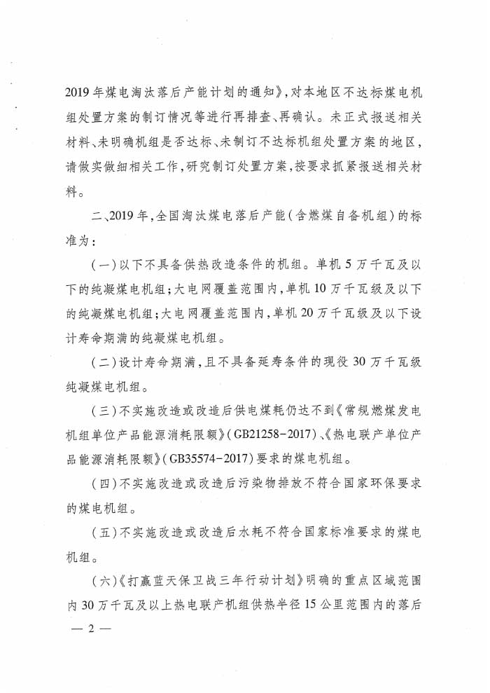 國家能源局下達(dá)2019年煤電行業(yè)淘汰落后產(chǎn)能目標(biāo)任務(wù)