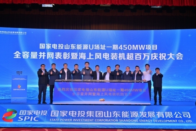 11月28日,國(guó)家電投山東能源U1場(chǎng)址一期450兆瓦海上風(fēng)電項(xiàng)目全容量并網(wǎng)表彰暨海上風(fēng)電裝機(jī)超百萬(wàn)慶祝大會(huì)舉行。新黃河記者獲悉,國(guó)家電投山東能源有限公司“百萬(wàn)千瓦級(jí)海上風(fēng)電基地”建成,這是國(guó)家電投在魯首個(gè)百萬(wàn)千瓦級(jí)海上風(fēng)電基地。
