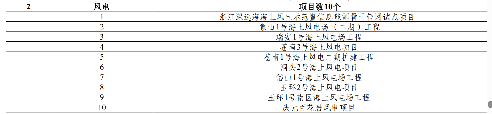 《項(xiàng)目表》顯示,2024年浙江省重大建設(shè)項(xiàng)目包含10個(gè)風(fēng)電項(xiàng)目,其中海上風(fēng)電項(xiàng)目8個(gè),即象山1號(hào)海上風(fēng)電場(chǎng)(二期)工程、瑞安1號(hào)海上風(fēng)電場(chǎng)工程、蒼南3號(hào)海上風(fēng)電項(xiàng)目、蒼南1號(hào)海上風(fēng)電二期擴(kuò)建工程、洞頭2號(hào)海上風(fēng)電項(xiàng)目、岱山1號(hào)海上風(fēng)電場(chǎng)工程、玉環(huán)2號(hào)海上風(fēng)電項(xiàng)目、玉環(huán)1號(hào)南區(qū)海上風(fēng)電場(chǎng)工程,海上風(fēng)電項(xiàng)目總裝機(jī)容量達(dá)2893MW。