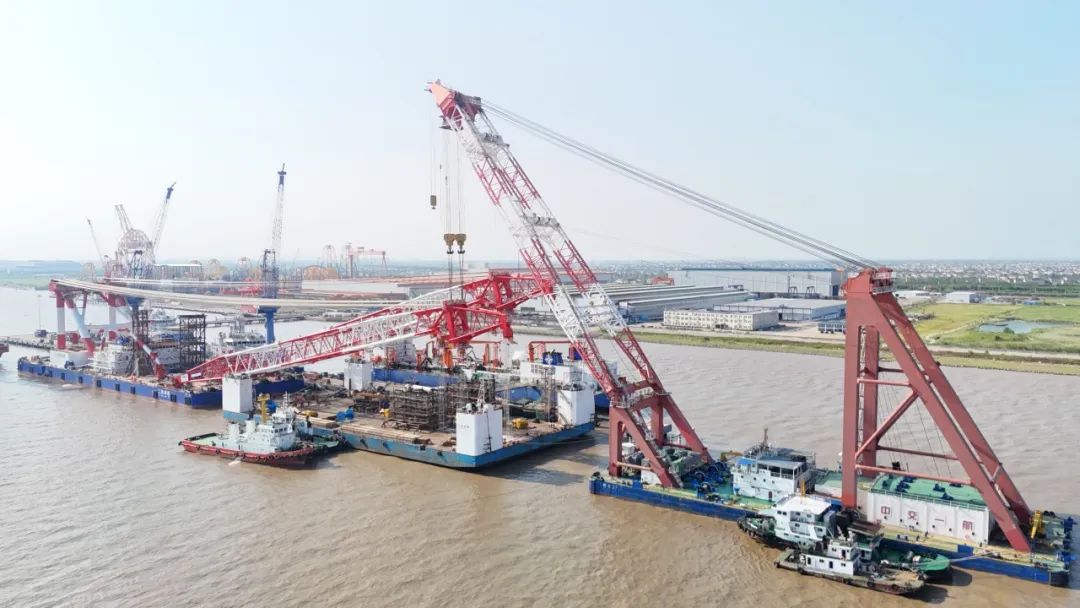 該項(xiàng)目起重機(jī)是目前國(guó)內(nèi)起重能力最大的雙臂架變幅式起重機(jī),是中交二航局5500噸雙臂架變幅式起重船“二航卓越”的配套起重設(shè)備。起重機(jī)四主鉤額定起重量5500噸,起升高度水上120米,水下15米。