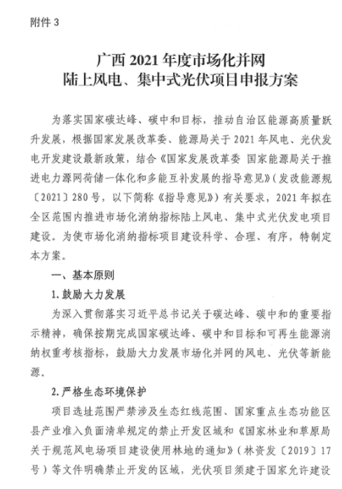 廣西壯族自治區(qū)發(fā)展和改革委員會關(guān)于申報2021年陸上風電、光伏發(fā)電項目的通知