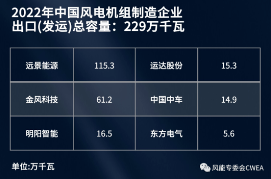 2022年,中國新增風(fēng)電機組出口(發(fā)運)容量為229萬千瓦,累計出口(發(fā)運)容量達1193萬千瓦,出口設(shè)備已遍布全球5大洲共49個國家。