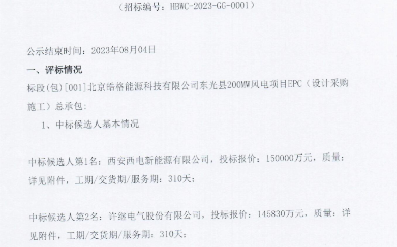 公告顯示,第一中標(biāo)候選人:西安西電新能源有限公司,投標(biāo)報(bào)價(jià): 150000萬元。第二中標(biāo)候選人:許繼電氣股份有限公司,投標(biāo)報(bào)價(jià): 145830萬元。第三中標(biāo)候選人:中國能源建設(shè)集團(tuán)陜西省電力設(shè)計(jì)院有限公司,投標(biāo)報(bào)價(jià):155492萬元。