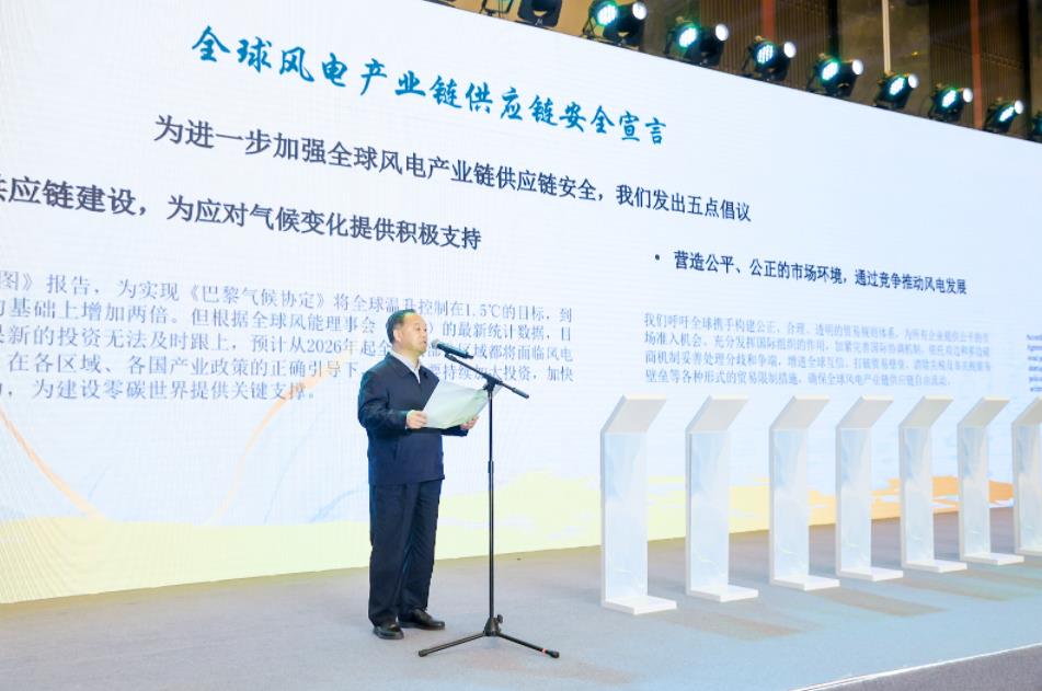 中國(guó)職工技術(shù)協(xié)會(huì)副理事長(zhǎng)、電力專委會(huì)名譽(yù)會(huì)長(zhǎng)畢亞雄,代表全體嘉賓莊嚴(yán)宣讀了《全球風(fēng)電產(chǎn)業(yè)鏈供應(yīng)鏈安全宣言》。