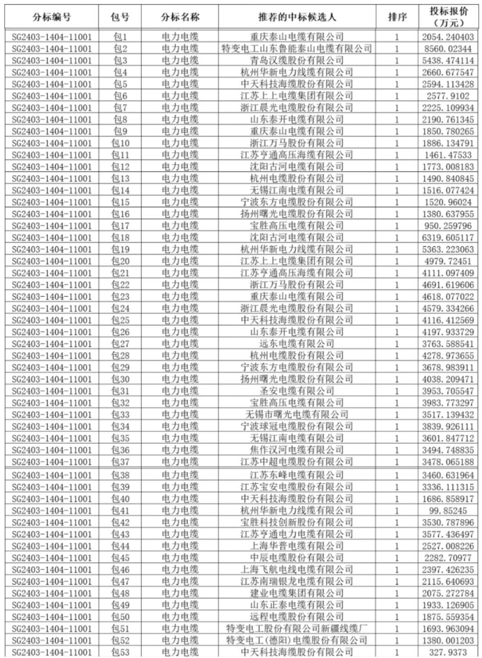 近日,國家電網(wǎng)有限公司2024年第十六批采購(輸變電項目第二次變電設(shè)備(含電纜)招標(biāo)采購)推薦的中標(biāo)候選人公示。根據(jù)此前發(fā)布的招標(biāo)文件,招標(biāo)涵蓋電力電纜、電纜附件、控制電纜、復(fù)核屏蔽封閉絕緣母線等產(chǎn)品。