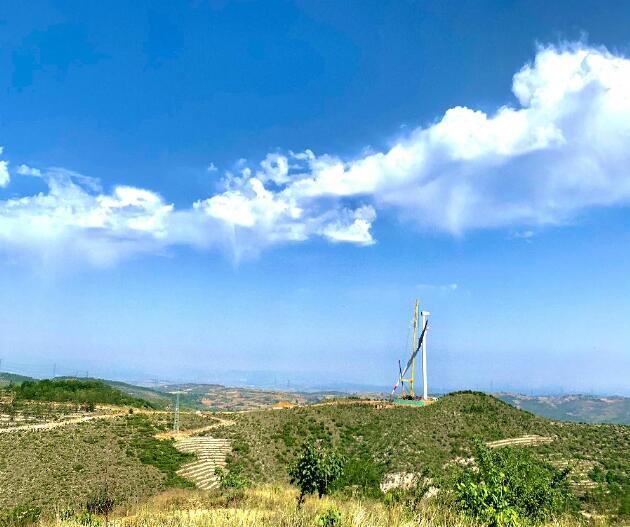 槐花香時(shí)麗日晴,風(fēng)起平定山光新。6月6日,由中國能建投資建設(shè)、山西院總承包、山西電建承建的山西平定100兆瓦風(fēng)電項(xiàng)目順首臺(tái)風(fēng)機(jī)吊裝任務(wù)完成。這是一次非同尋常的吊裝。平定風(fēng)電項(xiàng)目建設(shè)容量100兆瓦,安裝40臺(tái)海裝2.5兆瓦風(fēng)機(jī),機(jī)位大多分布在風(fēng)場(chǎng)各獨(dú)立山頭上,施工區(qū)域海拔高、范圍廣、吊裝難度大。