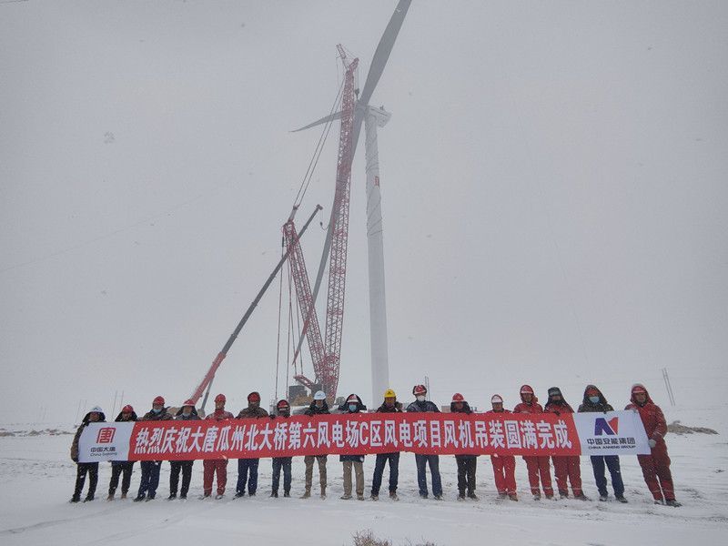 11月27日,隨著最后一臺風(fēng)機葉輪與輪轂在百米高空完成精準對接,由中國安能二局承建的大唐瓜州北大橋第六風(fēng)電場C區(qū)100MW風(fēng)電項目16臺風(fēng)機吊裝工作圓滿完成。