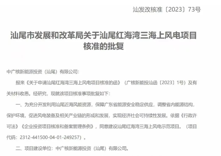《批復(fù)》顯示,汕尾紅海灣五海上風(fēng)電項(xiàng)目建設(shè)單位為華潤(rùn)風(fēng)電(汕尾)有限公司。項(xiàng)目位于汕尾紅海灣經(jīng)濟(jì)開發(fā)區(qū)南側(cè)海域,場(chǎng)址中心離岸距離30km,水深30-40m,總規(guī)劃容量為500MW,擬安裝28臺(tái)單機(jī)容量18MW級(jí)的風(fēng)力發(fā)電機(jī)組。該項(xiàng)目靜態(tài)總投資為480966萬元(不含送出海纜、海上升壓站、陸上集控中心等送出工程),動(dòng)態(tài)總投資為489755萬元。