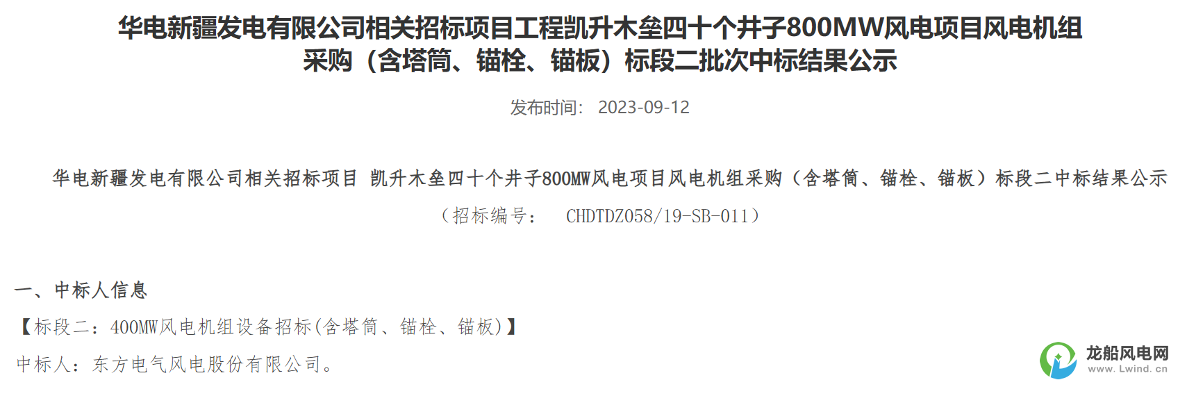 東方電氣風電股份有限公司成功中標標段二,中標價格為68937.600000萬元。