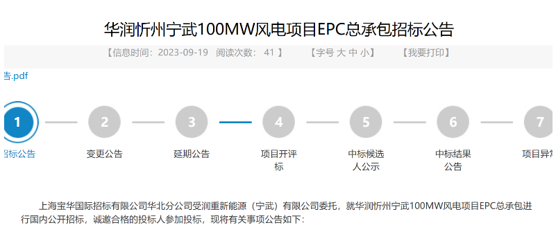 華潤忻州寧武100MW風(fēng)電項(xiàng)目: