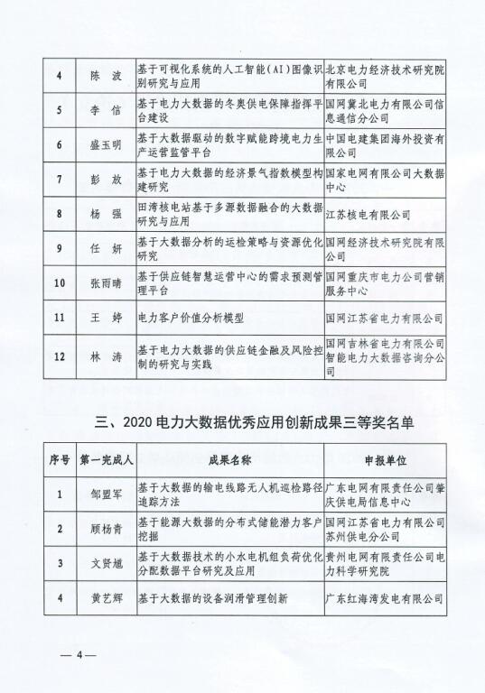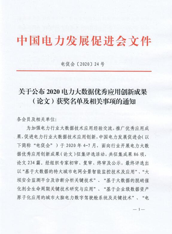 附件:2020電力大數(shù)據(jù)優(yōu)秀應用創(chuàng)新成果(論文)獲獎名單