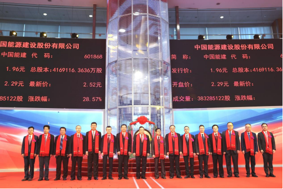 9月28日,中國能源建設股份有限公司(中國能建: 3996.HK)在上海證券交易所主板掛牌上市,股票簡稱為“中國能建”,股票代碼為“601868”。這是國企改革三年行動方案出臺后A股市場首單吸并重組交易。