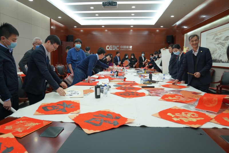 貼春聯(lián)是中華民族迎新年的傳統(tǒng)習(xí)俗,寫春聯(lián)更是對優(yōu)秀傳統(tǒng)文化的傳承。此次活動由中國能建書法美術(shù)協(xié)會主辦,公司黨群工作部協(xié)辦,極大豐富了職工群眾的精神生活,營造了濃厚的喜迎新春的節(jié)日氛圍?;顒託v時3個多小時,贈出春聯(lián)近300幅,福字400多幅,掛歷40多個。