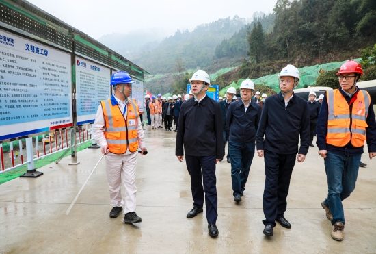 會后徐鵬程一行先后到云陽建全抽水蓄能電站上庫導流洞、下水庫1#中轉(zhuǎn)渣場、地下廠房5#施工支洞等項目施工現(xiàn)場進行了一線察看、詳細了解項目規(guī)劃設(shè)計、人員管理、安全生產(chǎn)、物資保障等情況,并就加快建設(shè)進度提出明確要求。