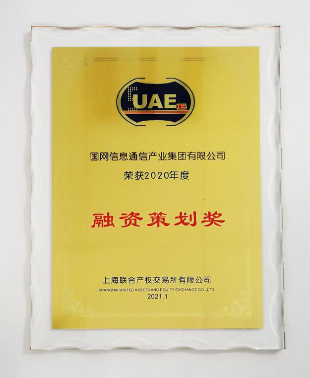 國網(wǎng)信通產(chǎn)業(yè)集團(tuán)榮獲上海聯(lián)合產(chǎn)權(quán)交易所 2020年度“融資策劃獎”