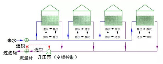 序批沉降流程介紹:序批沉降包括三個(gè)階段,即進(jìn)水階段→靜止沉降階段→排水階段。采用的沉降罐個(gè)數(shù)為4座(同一時(shí)間1座罐進(jìn)水、1座罐排水、2座罐靜止沉降),來水首先滿負(fù)荷進(jìn)入4個(gè)沉降罐中的1個(gè),與此同時(shí),另外2座沉降罐靜止沉降,剩下1個(gè)沉降罐排水;當(dāng)?shù)?個(gè)沉降罐進(jìn)滿水后開始進(jìn)行靜止沉降,與此同時(shí),原先進(jìn)行靜止沉降的2座沉降罐其中1座已經(jīng)沉降12h,開始排水,另外1座繼續(xù)靜止沉降,剩下的1個(gè)沉降罐已排空,開始進(jìn)水,而后依次循環(huán)來實(shí)現(xiàn)序批式靜止沉降。