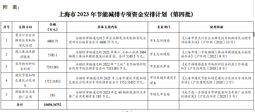 11月8日,上海市發(fā)改委下達(dá)2023年第四批節(jié)能減排專項(xiàng)資金安排計(jì)劃,共5項(xiàng),合計(jì)19656.36752萬(wàn)元。其中,安排經(jīng)審核通過(guò)2023年上海市建筑節(jié)能和綠色建筑示范項(xiàng)目專項(xiàng)扶持資金合計(jì)1752.51652萬(wàn)元。