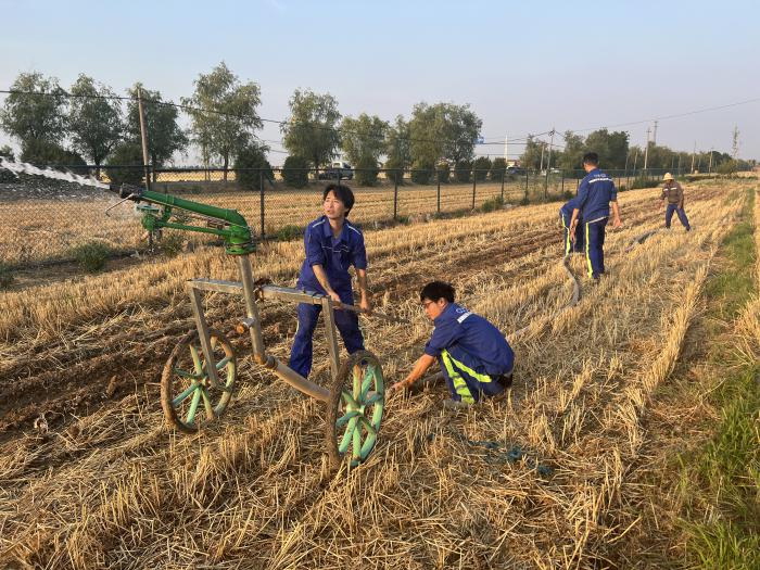 風(fēng)電河南區(qū)域公司員工協(xié)助河南省尉氏縣多個村莊村民對農(nóng)田里的農(nóng)作物進(jìn)行澆灌