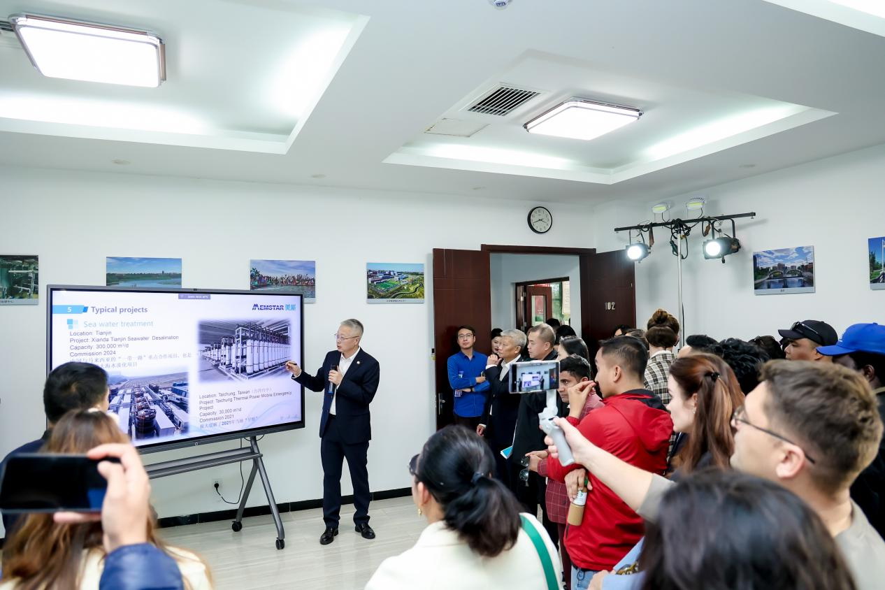 在近距離感受中信的水處理科技魅力后,在座談交流環(huán)節(jié),外媒對(duì)推動(dòng)全球環(huán)境治理的“中信方案”與“中信技術(shù)”興趣濃厚,圍繞如何平衡生態(tài)保護(hù)與經(jīng)濟(jì)發(fā)展、如何通過科技創(chuàng)新呵護(hù)綠色地球等話題,與中信環(huán)境展開熱烈而深入的交流。外媒團(tuán)記者將目光聚焦于中信環(huán)境的核心業(yè)務(wù)優(yōu)勢(shì)、美能膜技術(shù)亮點(diǎn)、海外市場(chǎng)布局、項(xiàng)目建設(shè)計(jì)劃等內(nèi)容,踴躍提問、積極發(fā)言。“中國(guó)茶與美能水給我們留下深刻印象,在水處理方面美能有何獨(dú)特技術(shù)優(yōu)勢(shì)?”“中信環(huán)境的生態(tài)技術(shù)和業(yè)務(wù)非常棒,未來(lái)是否有在中亞地區(qū)進(jìn)一步開拓市場(chǎng)的計(jì)劃?”“作為一家國(guó)際環(huán)保企業(yè),中信環(huán)境在不同地區(qū)有何不同市場(chǎng)策略?”“中信環(huán)境如何保證海外項(xiàng)目的可持續(xù)發(fā)展?”……熱盼合作的情緒在交流中不斷升溫,為座談會(huì)營(yíng)造了更加積極和富有建設(shè)性的氛圍。