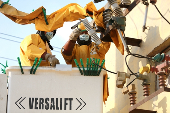中國(guó)電力網(wǎng)訊 1月11日,在濰坊壽光市東羅橋村,國(guó)網(wǎng)壽光市供電公司帶電作業(yè)人員冒著嚴(yán)寒,對(duì)10千伏羅橋線東羅1號(hào)分支線004號(hào)桿損壞的跌落開(kāi)關(guān)進(jìn)行緊急搶修,全面消除線路運(yùn)行缺陷,為農(nóng)村客戶溫暖度冬提供可靠供電保障。