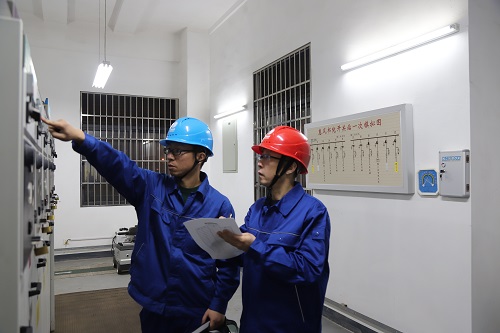 夜間特巡的電力員工首先來到位于小學(xué)內(nèi)的惠豐書院開關(guān)站進行巡檢,近期氣溫下降校園內(nèi)用電量增大,保障校園用電穩(wěn)定也顯得尤為重要。隨后兩位電力員工認真查看了配電屏上所有儀器指示盤上的電壓是否正常、電流是否超出變壓器上輸出的標(biāo)準(zhǔn)值的數(shù)據(jù),室內(nèi)配電設(shè)備是否存在問題,經(jīng)過仔細核查,本開關(guān)站都符合供電標(biāo)準(zhǔn)要求數(shù)據(jù)。