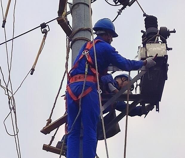 本次工作完成了10千伏都北線、10千伏港單線近百基電桿的登桿檢修作業(yè):整治了高低壓同桿架設距離不足隱患5處,清掃瓷瓶近100組,緊固拉線12根,修剪樹竹19處,更換刀閘4組,更換開關(guān)1組,新立12米電桿2根,整治滑坡隱患1處。線路檢修完工后均一次送電成功,高質(zhì)高效地完成了檢修任務。