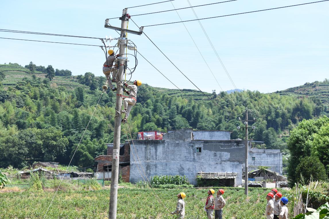 在經過近一個半小時的高空作業(yè),作業(yè)人員順利將新增變壓器的線路連接到了10千伏村邊支線1號桿上,完成了此次帶電作業(yè)任務。下桿后的作業(yè)人員臉龐被曬得通紅,個個衣服全部濕透,接過同事遞過來的水,一口氣灌入口中。