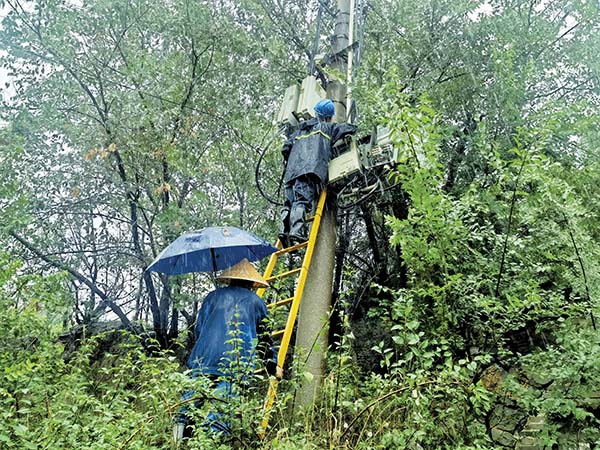 時(shí)間緊、任務(wù)重,蔭營(yíng)供電公司楊家莊供電所、蔭營(yíng)供電所立即組織人員趕赴現(xiàn)場(chǎng),對(duì)受損線(xiàn)路、設(shè)備開(kāi)展搶修復(fù)電作業(yè)。搶修人員克服天氣惡劣、施工環(huán)境復(fù)雜等困難,與時(shí)間賽跑,頂風(fēng)冒雨對(duì)故障點(diǎn)進(jìn)行逐級(jí)排查,最終于當(dāng)天恢復(fù)送電、修復(fù)設(shè)備。