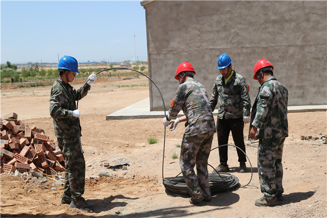 施工當(dāng)天烏海地區(qū)高溫來襲,施工難度陡增,六五四供電分局黨員突擊隊成員在三十五攝氏度的高溫下,頭頂烈日、腳踏電桿。按照分工干脆利落的進(jìn)行立桿、安裝橫擔(dān)、緊線等工作。經(jīng)過3個小時的作業(yè),終于順利地為此貧困戶送上電。貧困戶張占飛的母親非常激動。“原先以為只是簡單修一下,沒想到還需要這么多步驟,他們做得這么細(xì)致、這么認(rèn)真,真的是非常感謝他們。”