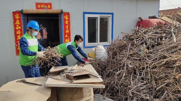 志愿者首先對老人家中用電設(shè)備和線路進(jìn)行了檢查,通過檢查發(fā)現(xiàn)接戶線老化嚴(yán)重,部分絕緣層已經(jīng)破損,存在一定安全隱患。發(fā)現(xiàn)該情況,志愿者立即與烏力吉營業(yè)所溝通,準(zhǔn)備工器具和導(dǎo)線為其重新更換接戶線,消除了安全隱患。隨后,志愿者來到老人家院外,幫助她撿拾樹枝,劈開后送到院內(nèi)充當(dāng)柴禾,并幫老人對小院子進(jìn)行了打掃。最后志愿者為老人送上米面油等生活用品和真摯的祝福。
